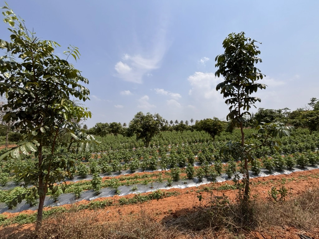 The Department of Horticulture, Government of Karnataka identifies eligible farmers and engages with them, partnering NGOs carry out field surveys and collect data, and NABCONS representatives monitor, train, and report on project activities – this project involves primarily one agroforestry design: mango and border trees consisting of different forestry species.